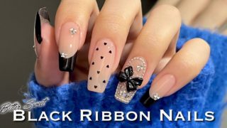 ジェルネイル 【セルフネイル】ほろ苦ガーリー🖤ブラックリボンネイル🍫🎀/ジェルネイル