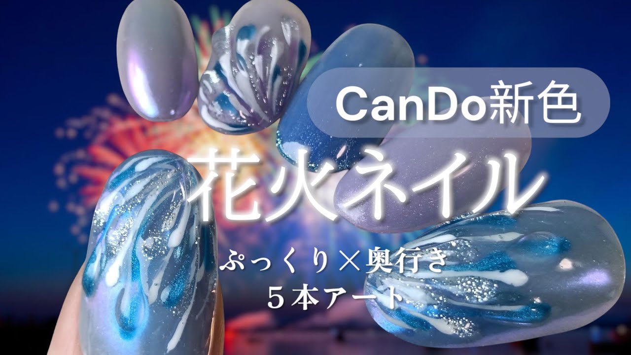 【キャンドゥ新色】花火ネイル ぷっくり×奥行き 5本アート ネイルアート 2025.08.112025.08.14 #セルフネイル #100均ネイル #cando #キャンドゥ #seria #ネイル #cando新色 #セリア #nails