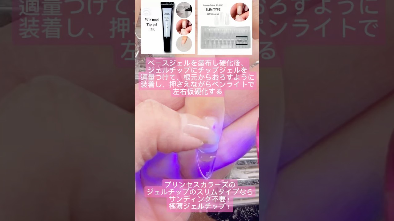 スリムタイプのジェルチップで長さ出し サンディング不要で剥がれないジェユチップ