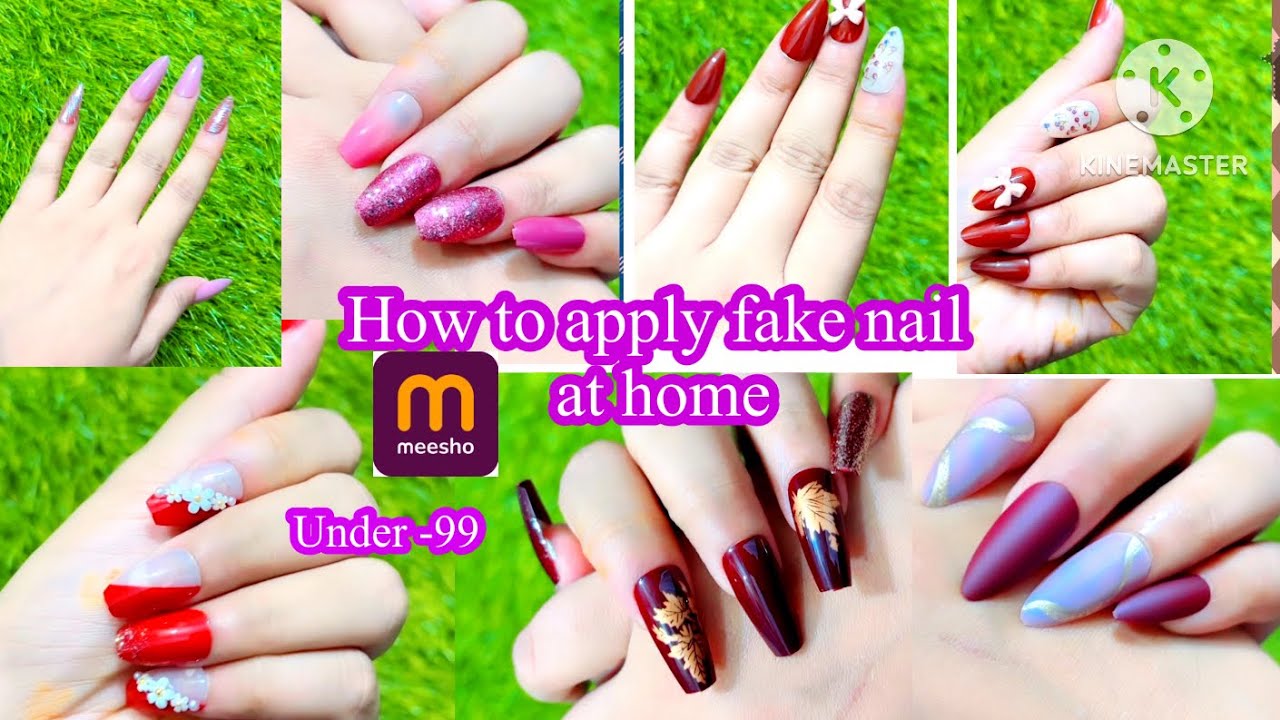 7. Vembley Set of 24 Artificial Reusable Nails in Maroon with glitter and flowers design with glue: https://www.wishlink.com/share/qvwh3